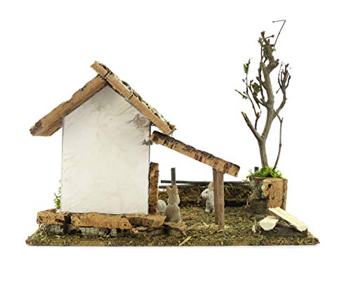 Ferrari & Arrighetti Casetta dei Conigli in Miniatura per Presepe, Linea Natale Presepi Bertoni, Legno e Resina, Multicolore, 19 x 15 x 14 Cm