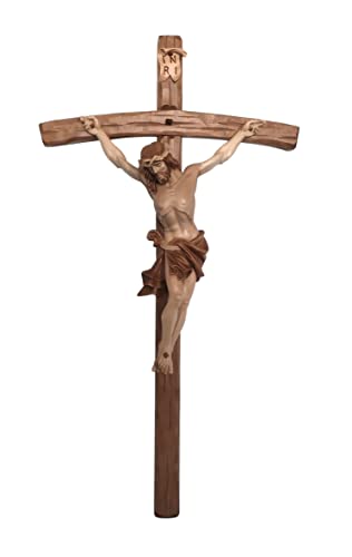 Ferrari & Arrighetti Crocifisso con Cristo delle Alpi in Legno di Tiglio, 3 Toni di Marrone, con Croce Pastorale, 41 x 78 cm, Altezza Gesù: 35 cm - Demetz Deur