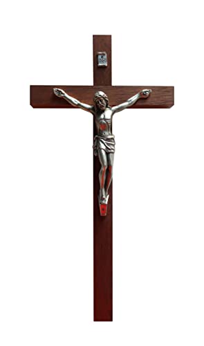 Ferrari & Arrighetti Crocifisso da Parete in Legno di Mogano con Cristo in Metallo - 30 cm