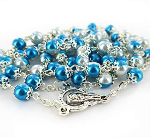 Ferrari & Arrighetti Rosario con grani effetto similperla con doppio colore - bianco e azzurro