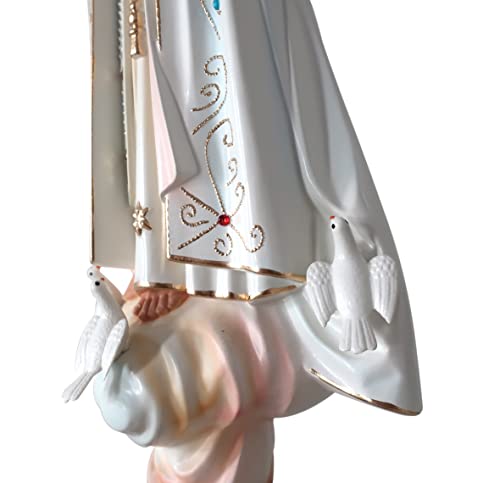 Ferrari & Arrighetti Statua Madonna di Fatima Dipinta a Mano con Occhi di Vetro e Strass, da Interno, Poliestere, Altezza 45 Cm Circa