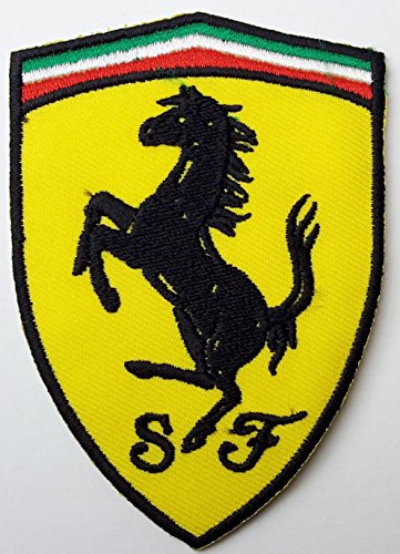 Ferrari giallo chiaro stemma ricamato toppa da cucire o termoadesivo 6 cm x 8.5 cm