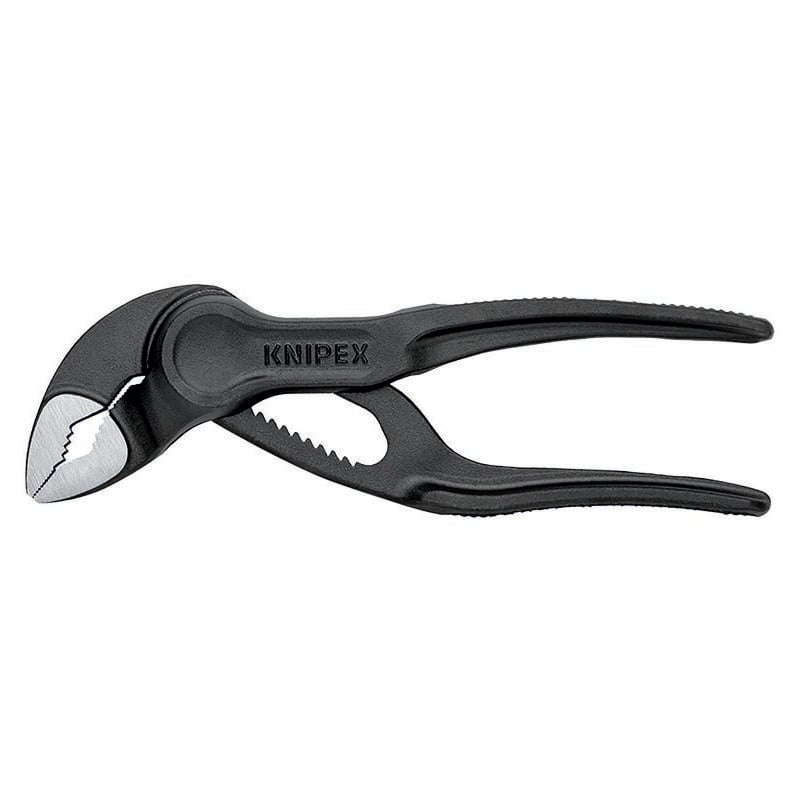 La pinza Knipex modello Cobra XS è un'ottima scelta per una vasta gamma di lavori manuali, grazie alla sua robustezza, precisione e praticità. Realizzata con acciaio al cromo vanadio forgiato e temperato, questa pinza offre una resistenza superiore e una durata nel tempo. La sua regolazione di precisione con 11 posizioni consente di adattarla facilmente alle dimensioni dell'oggetto da afferrare, e ciò può essere fatto anche con una sola mano, garantendo una manipolazione veloce e senza sforzi. Questa caratteristica la rende estremamente versatile e adatta per una vasta gamma di lavori. La pinza Cobra XS ha un'apertura massima di 24 mm, consentendo di afferrare con sicurezza anche oggetti di dimensioni più grandi. La sua cerniera passante e il fermo antischiacciamento assicurano una presa sicura e stabile durante l'uso, mentre la sua posizione ottimale in spazi ristretti la rende ideale per lavori in ambienti angusti. Con una lunghezza di 100 mm, questa pinza è compatta e maneggevole