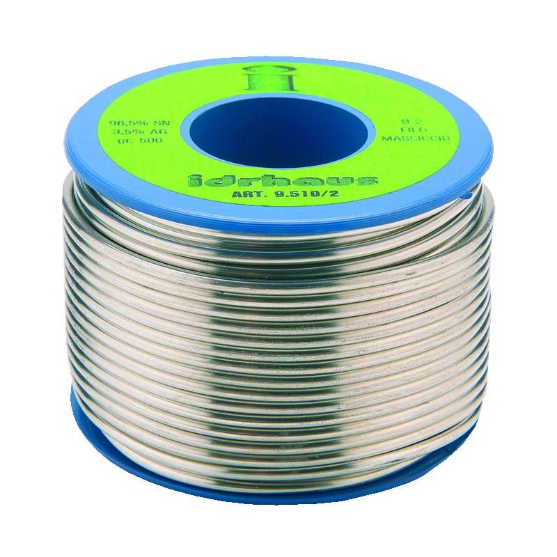 500 g Filo massiccio per la saldatura, a base di stagno e argento, adatto per gli impianti di acqua fredda, calda e gas. Temperatura di fusione 180-220 C° PESO:500 g