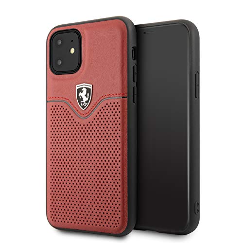 Questa custodia in vera pelle con un logo Ferrari metallico sptato per un effetto 3D ti dà un tocco classico ed elegante al tuo dispositivo portatile. Compatibile con iPhone 11.