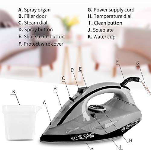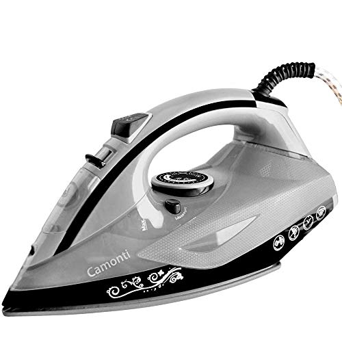 Ferri a vapore, Camonti Ferro da Stiro 2500W con Boost vapore regolabile Carro armato dell'acqua da 300 ml, piastra ceramica antiaderente, antigoccia e autopulente, vapore verticale e orizzontale