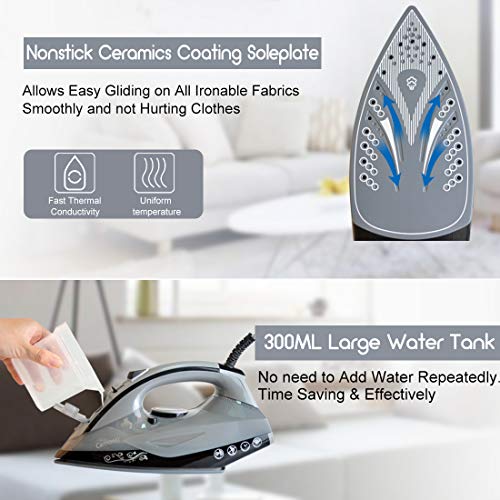 【Risparmio di tempo & di calore】 - Con 2500 W di potenza, il ferro può generare vapore in meno di 1 minuto, vapore e fino a 40 g / min. Il ferro da stiro a vapore è il tuo aiuto ideale per lisciare il bucato, permettendoti di appianare rapidamente e facilmente i vestiti spiegazzati