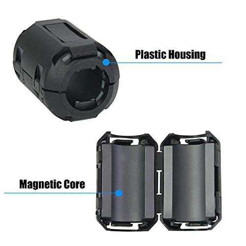 ❶ 【Materiale in ferrite per la riduzione del rumore】 - Telaio rimovibile Il nucleo dell'anello di ferrite è costituito da un guscio di plastica e un nucleo di ferrite. La proprietà di assorbimento ad alta frequenza del nucleo di ferrite ha un eccellente effetto di assorbimento del rumore ad alta frequenza che può eliminare il rumore senza influire sulla qualità del segnale.
