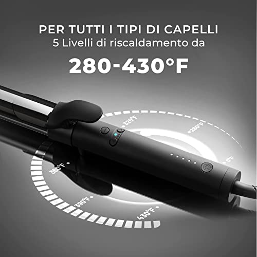 RISULTATI PROFESSIONALI CON IL TITANIO: La bacchetta dell'arricciacapelli è progettata con un rivestimento in nano-titanio di livello professionale, che consente di ottenere ricci definiti che durano fino a 48 ore. A differenza del tradizionale materiale ceramico, il rivestimento in titanio è più liscio e aiuta a ridurre la metà dell'effetto crespo causato dall'attrito.