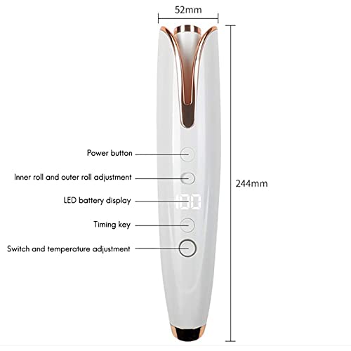 Ferro arricciacapelli automatico senza fili, bigodino automatico con batteria, ferro arricciacapelli automatico, grandi ricci automatici cheratina negativo agli ioni di curling Iron 4 temperature LCD