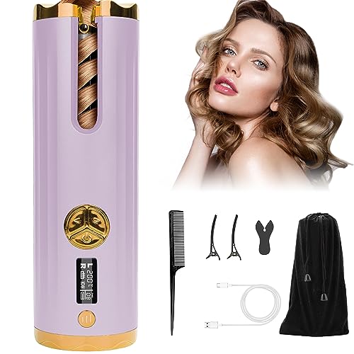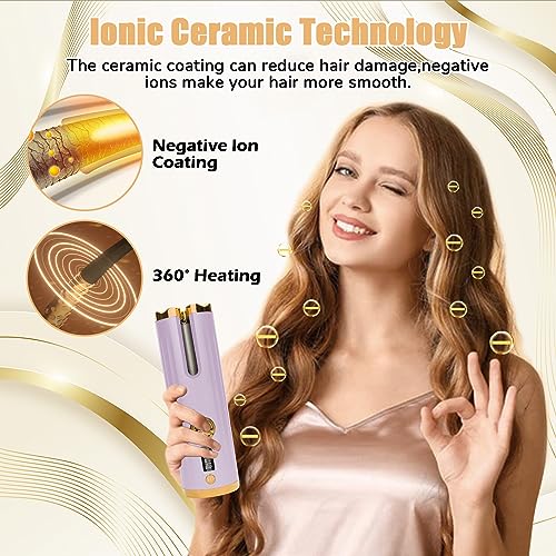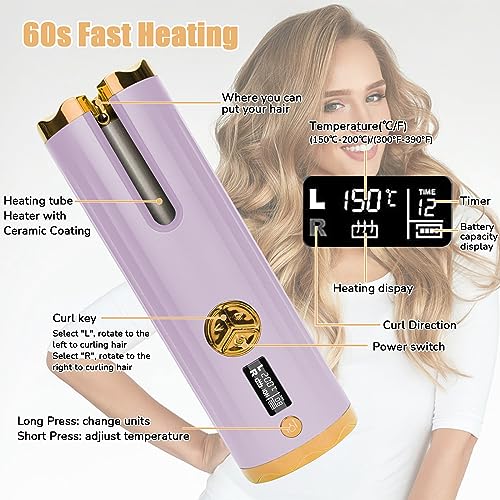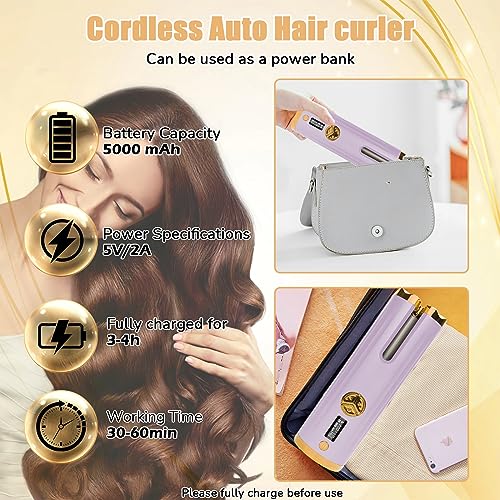 Ferro Arricciacapelli Automatico, Arricciacapelli Senza Fili Portatile, 6 Temperatura, Sicuro e Antiscottatura, Rivestimento in Ceramica, LCD Display e Cavo USB, Ricaricabile, Auto Spegnimento (5)