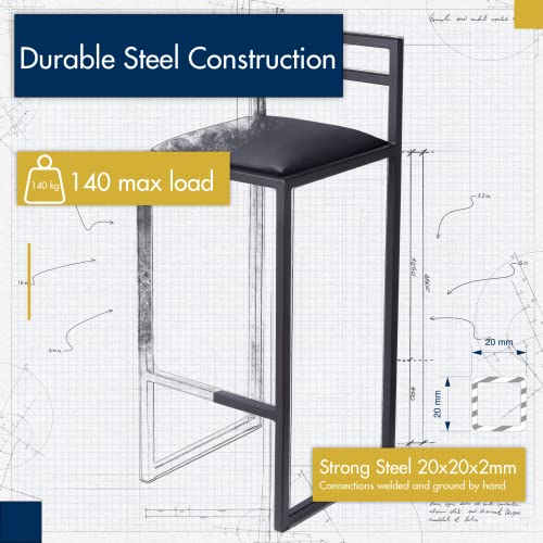 FERRO modern design Sgabelli Cucina Nero 95cm - Seduta Sgabello Bar Moderni - Sgabello Cucina Moderno - Sgabelli Alti da Bar - Sgabello Alto con Schienale - Sedie Bar - Sedie Alte per Penisola Cucina