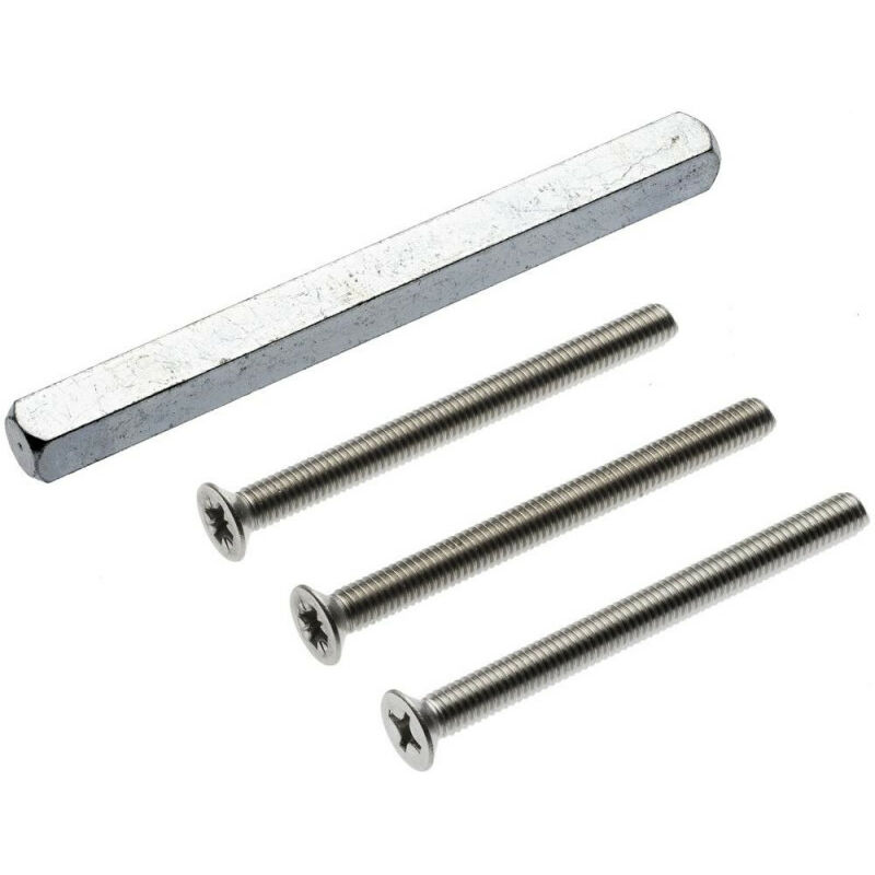 Set di montaggio per porte profilate n. 81 - Perno in acciaio. zincato - Lunghezza perno 120 mm - Diametro vite metrica M6. Lunghezza vite metrica 100 - Incavo a croce - Formazione testa lente - Numero di viti 3 pezzi - Spessore porta min. 88 mm. max. 92 mm - Per montaggio intercambiabile - Per modello Kronos/Uranus. Numero di modello 081 Consegna: Viti incluse.