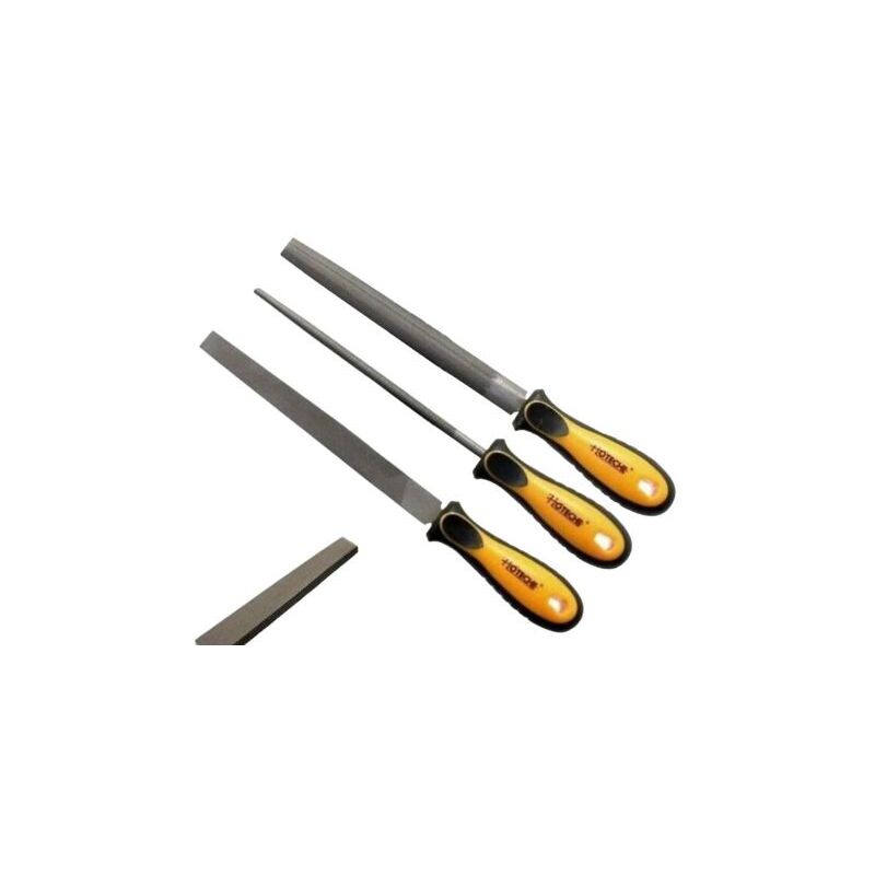 SET 3 Lime Raspa per metallo tonda semitonda piatta 402003 Set di 3 lime Lama in acciaio - Impugnatura in materiale plastico con inserti antiscivolo. Ideale per Ferro e chi opera in settori come infissi in alluminio, ottimo prodotto anche per gli amanti del fai da te. Sezione: tonda, semitonda e piatta. LUNGHEZZA LAMA 8 - 200 mm