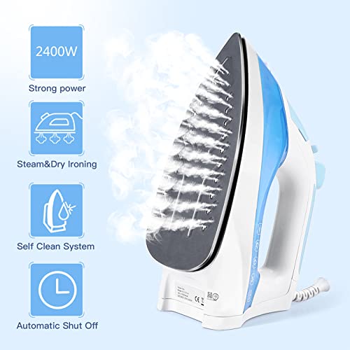 Ferro da stiro a vapore, Ferro da Stiro Elettrico da 2400 W, Riscaldamento Rapido 25 Secondi, Ferro da Stiro a Vapore Orizzontale e Verticale con Funzioni Autopulenti, Ferro da Stiro da 320 ml