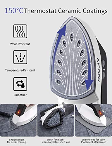 Ferro da Stiro Verticale,Aicook Ceramici Termostatici Stiratore Verticale a Vapore,Any angle Anti Gocciolio,Nano-Secco Vapore,Impulso Incremento,1100W Ferro da Stiro da Viaggio