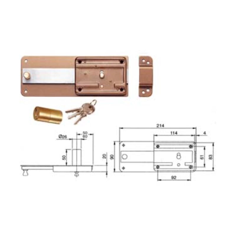 Mm.60 (310604600) scatola e bocchetta in acciaio verniciato, serratura da applicare per porte in ferro, catenaccio a 6 mandate e pomolo interno di sblocco, con cilindro fisso ø mm.26 da mm.50 e 3 chiavi Categoria merceologica: Serrature, chiusure di sicurezza e accessori - Sicurezza - Ferroglietti