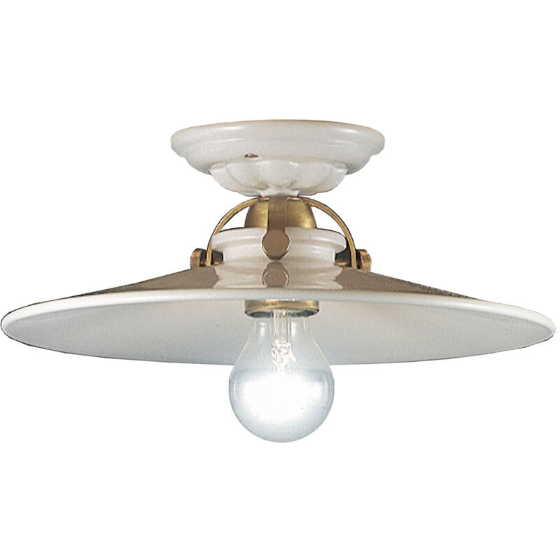 Collezione Classic Asti L'ARMONIA DEI DECORI Plafoniera 1 Luce E27 diametro 31 cm in ceramica decoro Filo Bianco Lucido con montatura Ottone Satinato frutto di una lavorazione eseguita rigorosamente a mano secondo le tecniche artigianali di una volta. L'armonia di un rassicurante passato ritorna nei materiali che compongono una linea dalle forme semplici ed essenziali. Il metallo e i decori dipinti a mano sulla ceramica sottolineano la maestria del lavoro manuale degli artigiani. La personalizzazione di ogni elemento rende la linea ancor più originale. Può essere un'ottima scelta per l'illuminazione della vostra mansarda country chic E' disponibile anche nei colori Argento, Bianco, Bianco Sfumato Argento, Bianco Sfumato Oro, Nero, Nero Sfumato Argento, Nero Sfumato Oro, Nero Sfumato Rame, Ruggine, Verde Sfumato Oro.