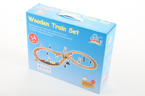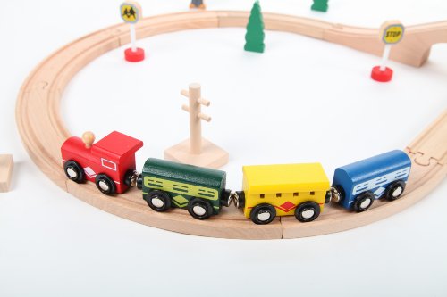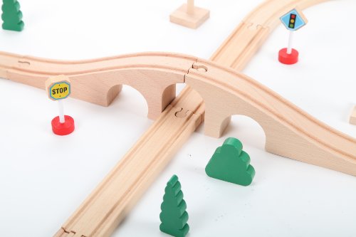 Set ferrovia in legno 34 pezzi, treno set completo in legno