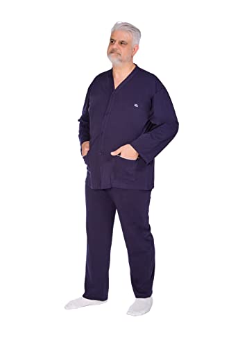 FERRUCCI COMFORT Pigiama Uomo Cardigan Taglie Comode in Cotone - Manica Lunga e Pantalone Lungo - Blu Scuro (Blu, 5XL)