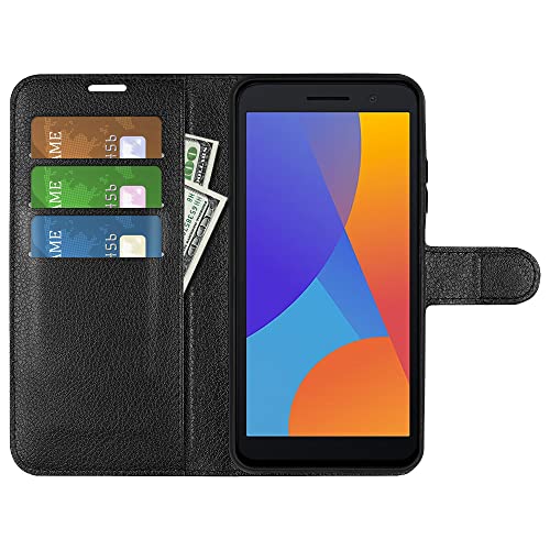 Fertuo Cover per Alcatel 1 2021, Custodia Portafoglio Cover a Libro in Pelle Flip Case con Silicone Bumper, Fibbia Magnetica, Porta Carte, Kickstand, per Alcatel 1 2021, Nero