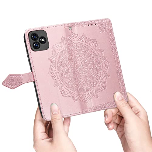 Fertuo Cover per Blackview Oscal C20, Custodia Portafoglio a Libro in Pelle Flip Cover con Porta Carte, Chiusura Magnetica [Disegni di Mandala] Case Antiurto per Blackview Oscal C20, Oro Rosa
