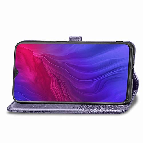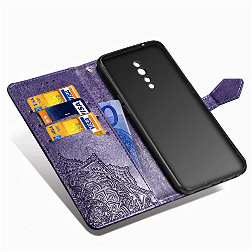 Fertuo Cover OPPO Reno Z, Custodia Portafoglio a Libro in Pelle Flip Cover con Porta Carte, Kickstand, Chiusura Magnetica [Disegni di Mandala] Case Antiurto per OPPO Reno Z, Viola