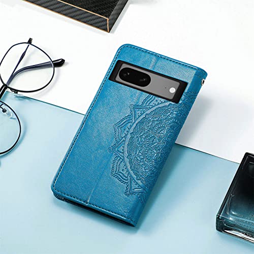 Fertuo Cover per Google Pixel 7, Custodia Portafoglio a Libro in Pelle Flip Cover con Porta Carte, Chiusura Magnetica [Disegni di Mandala] Case Antiurto per Google Pixel 7, Blu
