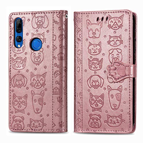 Fertuo Cover Huawei P Smart Plus 2019, Custodia Portafoglio a Libro in Pelle Flip Cover con Porta Carte, Chiusura Magnetica [Disegni di Gatto Cane] Case Antiurto per P Smart+ 2019, Oro Rosa