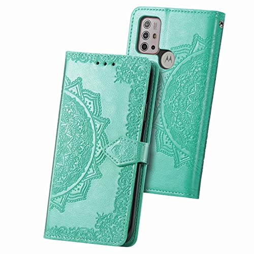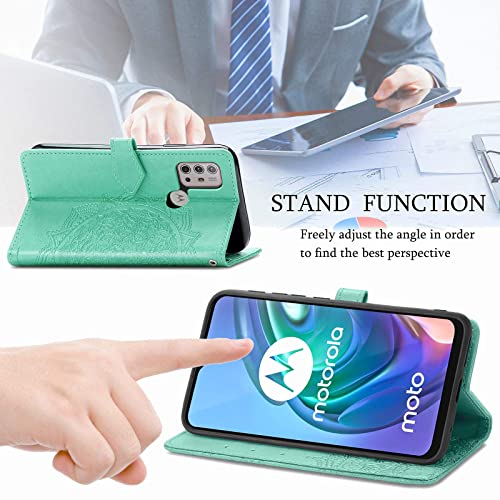Fertuo Cover per Motorola Moto G10 / Moto G30 / G20, Custodia Portafoglio a Libro in Pelle Flip Cover con Porta Carte, Chiusura Magnetica [Disegni di Mandala] Case Antiurto per Moto G10 / G30, Verde