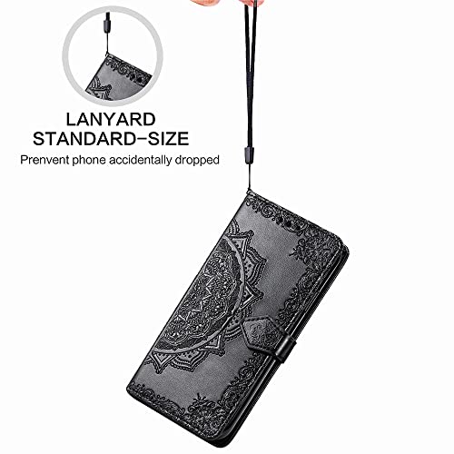 [Portafoglio Mandala]: Progettato con elegante fiore di mandala in rilievo che rende il tuo smartphone un aspetto più bello e glamour, combinato con kickstand, porta carte, portafoglio, fibbia magnetica e cinturino a mano, è molto pratico per uso interno ed esterno