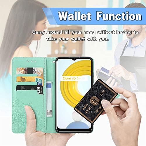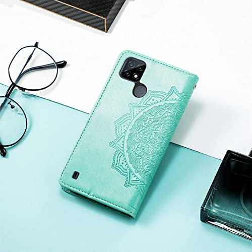 Fertuo Cover per Realme C21Y / C25Y, Custodia Portafoglio a Libro in Pelle Flip Cover con Porta Carte, Chiusura Magnetica [Disegni di Mandala] Case Antiurto per Realme C21Y / C25Y, Verde