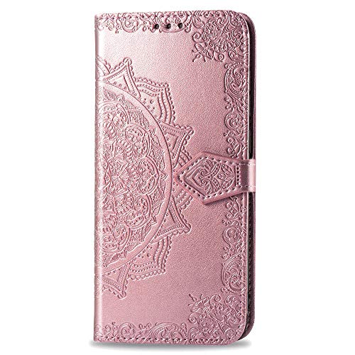 Fertuo Cover Samsung S10 Lite, Custodia Portafoglio a Libro in Pelle Flip Cover con Porta Carte, Kickstand, Chiusura Magnetica [Disegni di Mandala] Case Antiurto per Samsung Galaxy S10 Lite, Oro Rosa