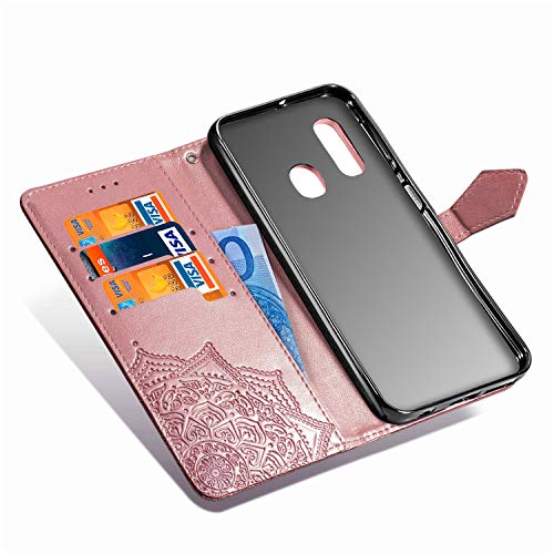 Fertuo Cover Samsung A20e, Custodia Portafoglio a Libro in Pelle Flip Cover con Porta Carte, Kickstand, Chiusura Magnetica [Disegni di Mandala] Case Antiurto per Samsung Galaxy A20e, Oro Rosa