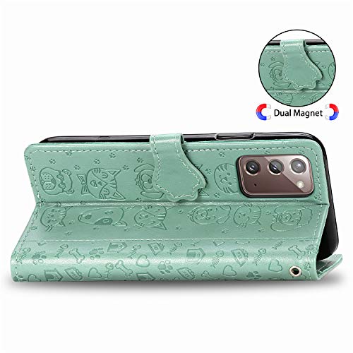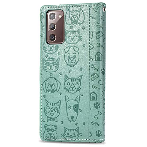 Fertuo Cover Samsung Galaxy Note 20, Custodia Portafoglio a Libro in Pelle Flip Cover con Porta Carte, Chiusura Magnetica [Disegni di Gatto Cane] Case Antiurto per Samsung Galaxy Note 20, Verde