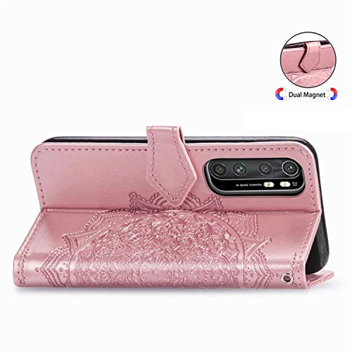 Fertuo Cover Xiaomi Mi Note 10 Lite, Custodia Portafoglio a Libro in Pelle Flip Cover con Porta Carte, Chiusura Magnetica [Disegni di Mandala] Case Antiurto per Xiaomi Mi Note 10 Lite, Oro Rosa