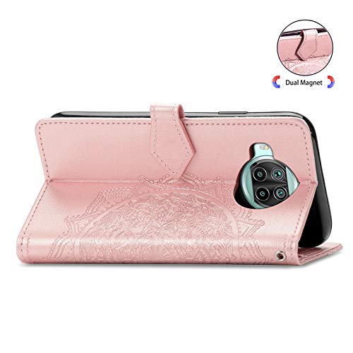 Fertuo Cover Xiaomi Mi 10T Lite, Custodia Portafoglio a Libro in Pelle Flip Cover con Porta Carte, Kickstand, Chiusura Magnetica [Disegni di Mandala] Case Antiurto per Xiaomi Mi 10T Lite, Oro Rosa