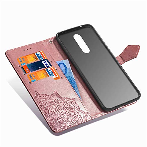 Fertuo Cover Xiaomi Redmi 8, Custodia Portafoglio a Libro in Pelle Flip Cover con Porta Carte, Kickstand, Chiusura Magnetica [Disegni di Mandala] Case Antiurto per Xiaomi Redmi 8, Oro Rosa