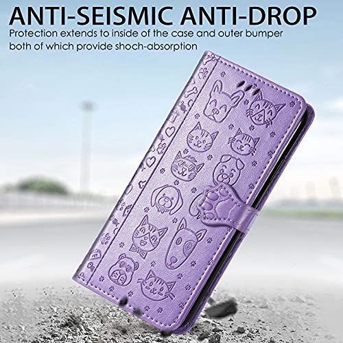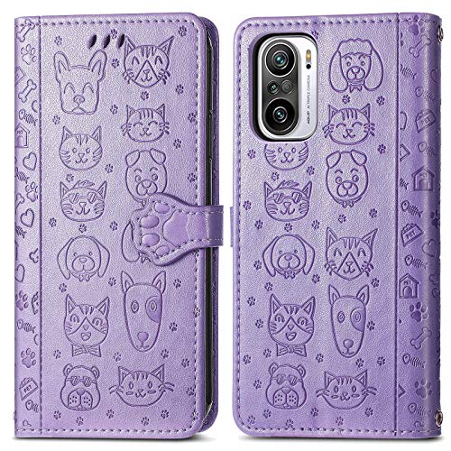 Fertuo Cover per Xiaomi Redmi Note 10 Pro, Custodia Portafoglio a Libro in Pelle Flip Cover con Porta Carte, Chiusura Magnetica [Disegni di Gatto Cane] Case Antiurto per Redmi Note 10 Pro, Viola