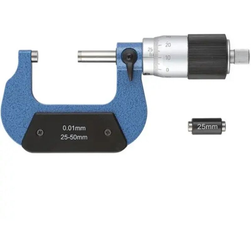 Con tamburo grande a 100 divisioni con contatti in metallo duro e frizione sul tamburo Caratteristiche tecniche: MatHM NormaDIN 863 Scatola Misura 25 ÷ 50 mm Lettura 0,01 mm Precisione 0,004 mm