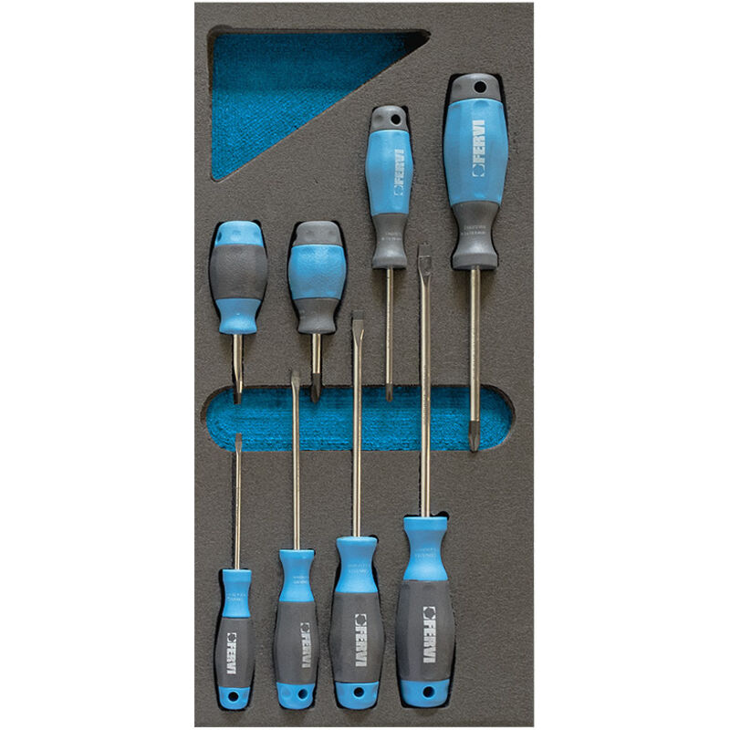 Il termoformato morbido con assortimento 8 Pz. Fervi TM01/020 è un assortimento di utensili manuali completo e versatile.Questo termoformato morbido è realizzato in polietilene espanso a quattro strati, comodo ed ordinato risulta ideale per completare la dotazione di officine e garage.La dotazione, composta da 8 pezzi, comprende nello specifico:- 5x Fervi C882 Cacciavite a croce misure PH 1 x 75 - PH 2 x 100 - PH 2 x 38 mm- 3x Fervi C884 Cacciavite a lama piatta misure 3 x 75 - 4 x 100 - 5 x 125 - 6 x 150 - 6 x 38 mm Utilizzo: Cassettiere, Officina Tipologia: Termoformato Assortimento: Cacciavite a croce e a lama piatta Contenitore: Morbido in polietilene Pezzi per confezione: 8 Prodotti correlati: Cassettiere Fervi Peso: 0,53 kg Valigetta: No