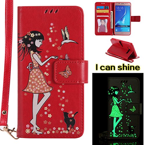 FESELE EUWLY Cover per Samsung Galaxy J5 (2016), Custodia Flip Stand PU Pelle Case-Rosso