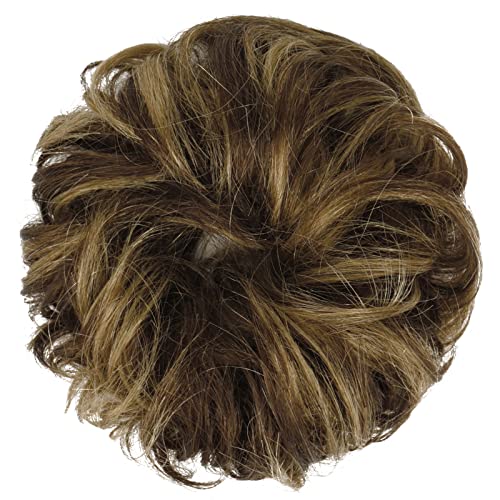 FESHFEN Chignon Capelli Veri, Ondulato Chignon Facile per Capelli Elastici Naturale Posticci Capelli Chignon Extension per Donna, Marrone & Biondo