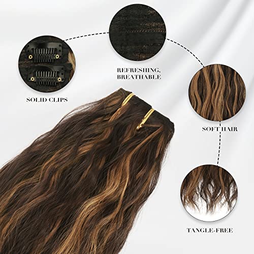 FESHFEN Extension Capelli con Clip 4 PCS Lunga Ondulati Ricci Estension Capelli Sintetici Posticci per capelli Clip Hair Extension per Donna, Nero 50 cm