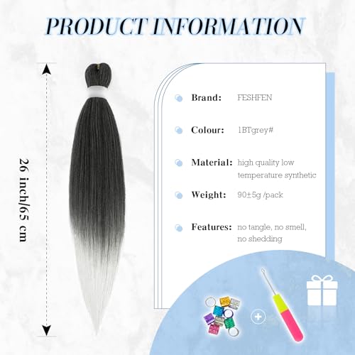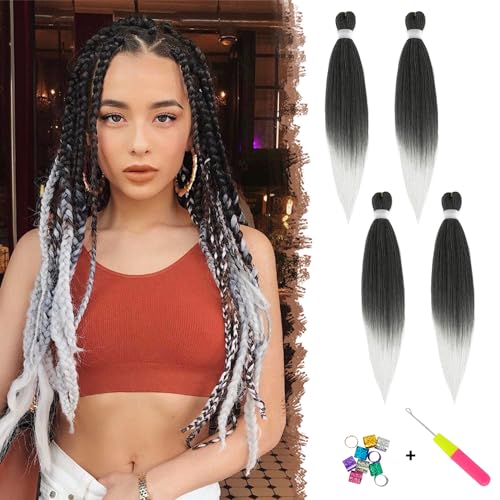 FESHFEN Extension per Treccine Africane, Lunga Extensione per Capelli con Treccia Sintetica Braiding Hair Extensions Crochet Trecce Torsione per Donne 4 PCS 65 cm, Da Nero a Argento