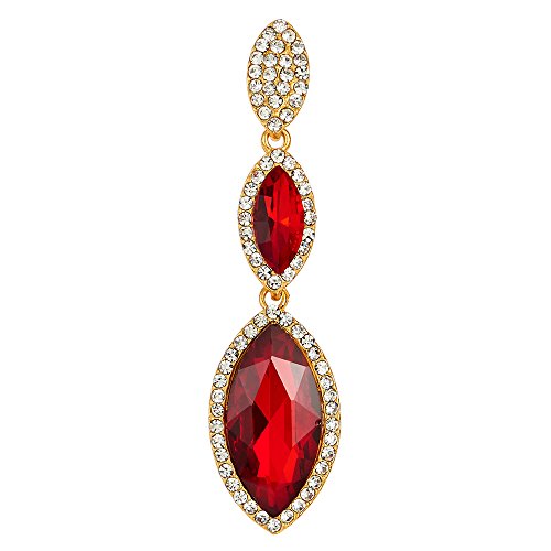 Festa Ballo Banchetti Abito da Sera Rosso Cristallo Navette Lunga Oro Statement Dichiarazione Orecchini