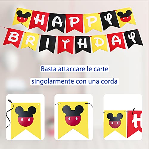 Valore Forniture per feste di Topolino Il pacchetto include 2 set di banner per mickey mouse,1 palloncini con numeri 1,2 palloncini con testa di mickey mouse,13 cake topper,1 mickey mouse headbands,4 sfera di alluminio a stellaa cinque punte,1 ornamenti per porte di topolino,20 Palloncini in lattice(giallo, rosso, nero,bianco) e gonfiatore.