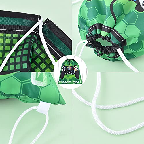 Festa Gioco Sacchettini - 12PCS 25,5 x 30,5cm Articoli per Feste per Videogiochi per Ragazzi Sacchetti per Zaini con Coulisse Avvolgere le Borse Goodie Forniture per Feste per Compleanno Natale Scuola