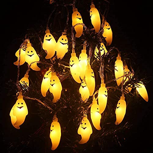 Luci della Festa di HalloweenFantasmi, 1.5M 10 LED Luci Stringa con Decorazioni Fantasma,Fantasma per Decorazioni di Halloween Funziona a Batteria, Giardino, Interni, Portico, Esterna