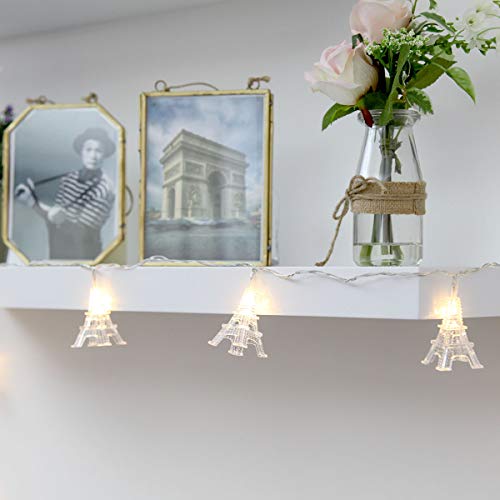 Festive Lights - Ghirlanda luminosa romantica a forma di Torre Eiffel, funzionamento a batteria, 1,9 m, 10 LED bianco caldo